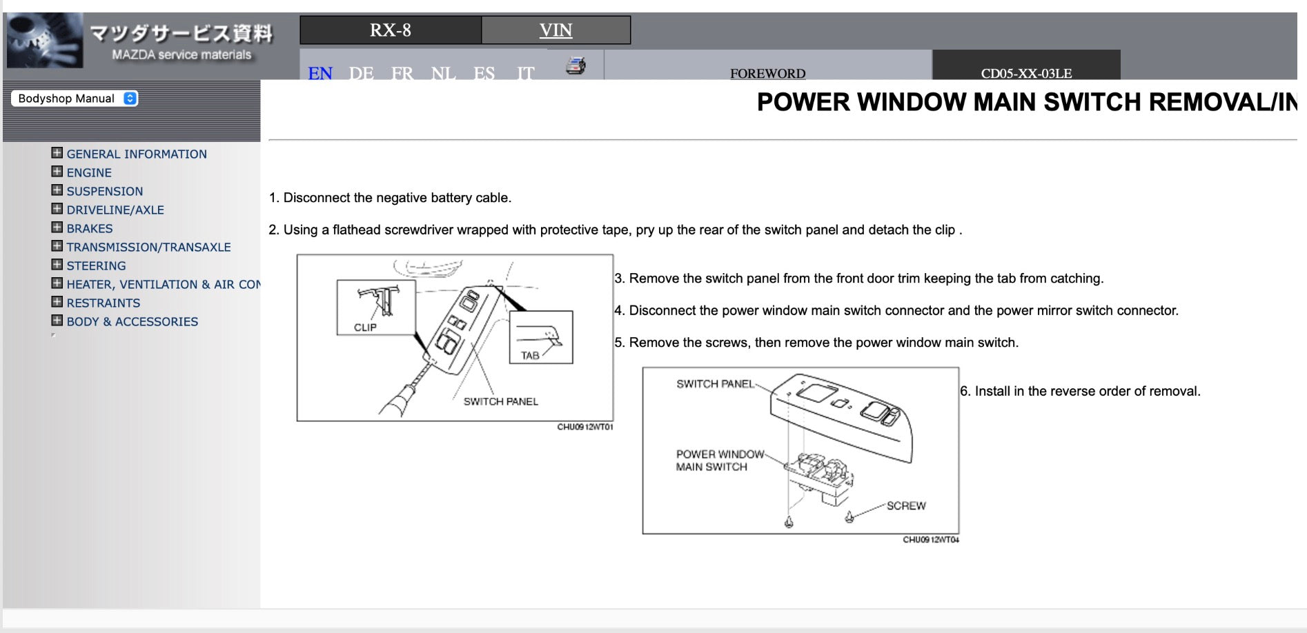 Mazda RX8 (2003-2009) Manuale officina Repair Manual |