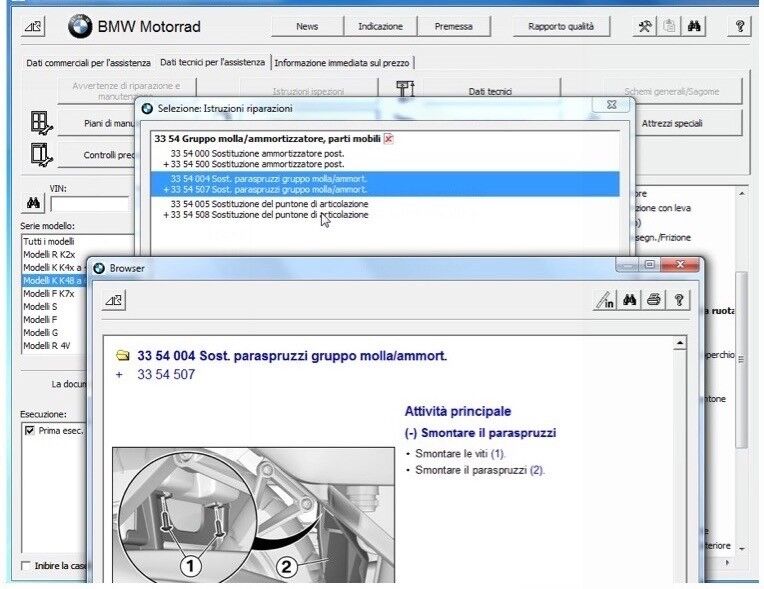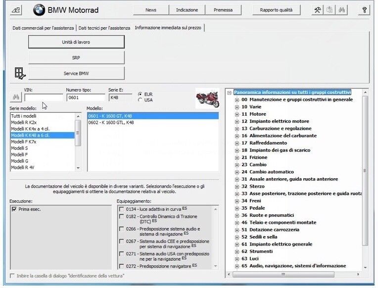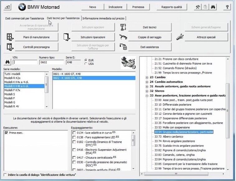 Il software Bmw Motorrad RSD (Repair & Service Data) comprende i manuali di officina di tutte le moto Bmw fino al 2015. L'applicazione è disponibile in diverse lingue. di facilissima installazione e consultazione. Il programma contiene un servizio commerciale di dati, informazioni sui pezzi di ricambio, tempari dei lavori, codici, descrizioni di manutenzione ordinaria e di pre-consegna, manuali di riparazione, specifiche tecniche, coppie di serraglio, dati service, descrizione di attrezzi e strumenti. Include descrizioni passo passo dei lavori, con immagini che mostrano i processi di smontaggio, montaggio e riparazione. Il programma ha un'interfaccia molto user-friendly; questa è la versione su dvd dual layer (oltre 6 gigabyte di dati) aggiornata al 05/2015. Può essere eseguita direttamente dal dvd, senza installazione, oppure dal Pc, copiando tutti i dati del dvd DL in una cartella sul desktop del computer. I manuali sono di facile consultazione, con la possibilità di stampare direttamente dal Pc le diverse sezioni. E' un software fantastico, che contiene davvero tutto quello che riguarda le modo Bmw. La foto sopra è quella reale del cd/dvd che riceverete! |
