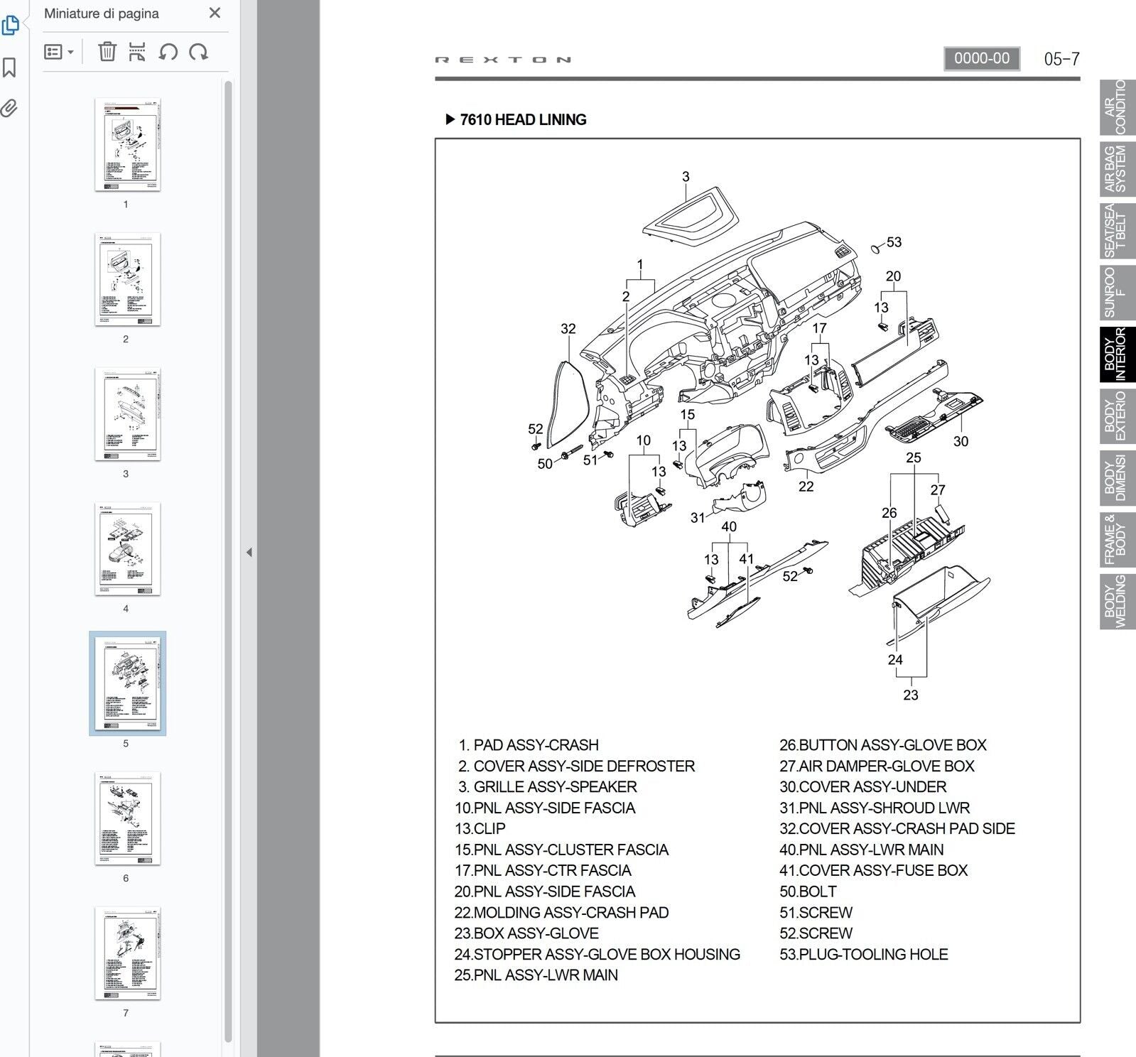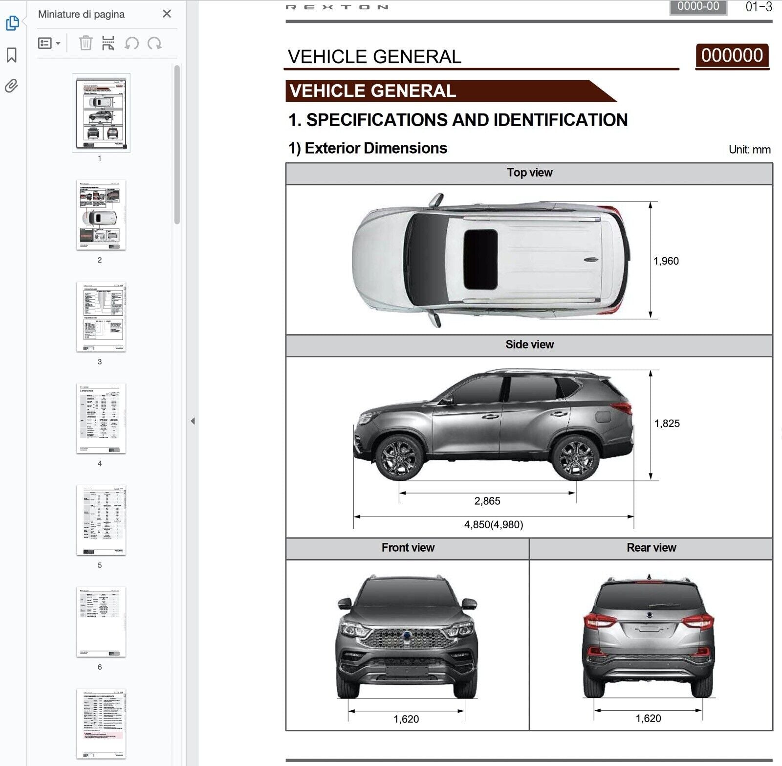 Manuale d'officina in formato PDF, leggibile su qualsiasi Pc o Mac o Tablet. Descrive passo-passo le procedure per effettuare interventi e riparazioni, montaggi e smontaggi sulla vettura. E' in lingua INGLESE. Contiene centinaia di foto, diagrammi e disegni per rendere più facile il lavoro. E' il manuale ufficiale Ssangyong. Contiene le informazioni per operare su gran parte dell'auto. Potete consultarlo sul computer, oppure stampare le singole sezioni o pagine che vi interessano. Include anche il “Electric Wiring diagrams per RHD e LHD"