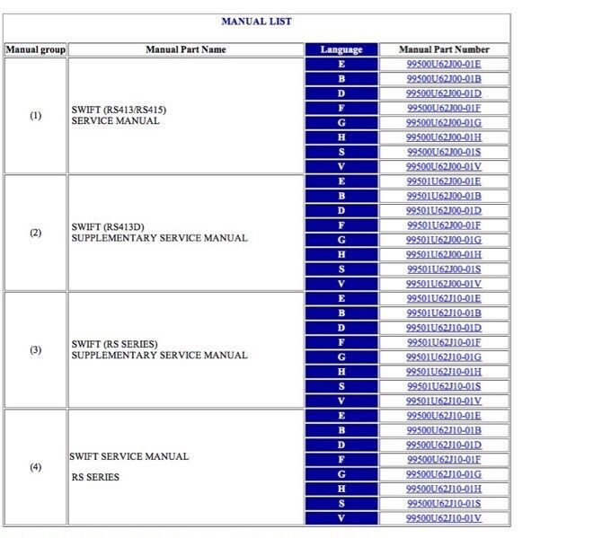 Modello/Model: Suzuki Swift (2004-2010) - RS413 - RS415 - RS413D Motori/Engines: |