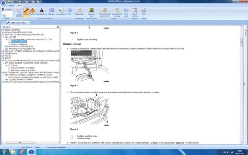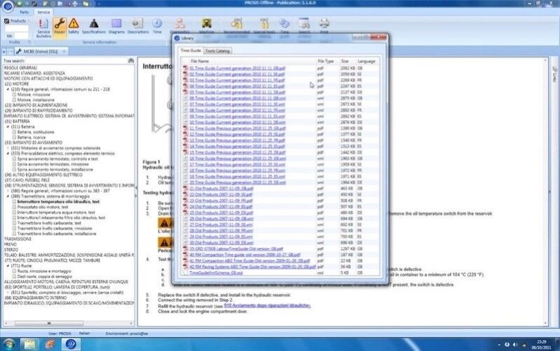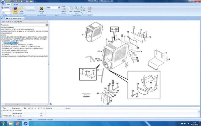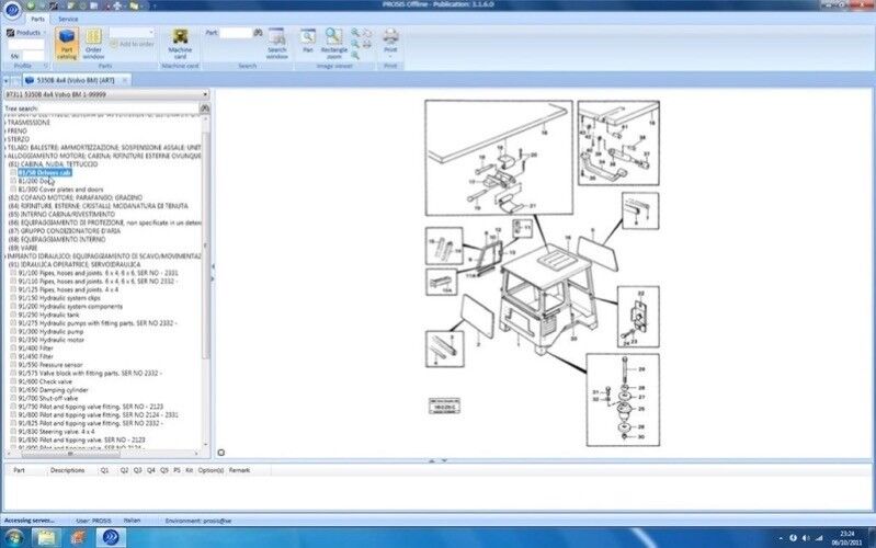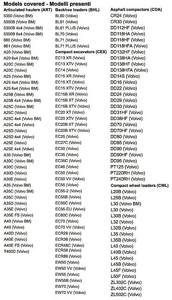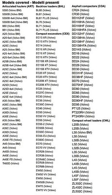 applicazione per PC Windows su 3 Dvd DL che contiene i manuali di officina ed i cataloghi dei ricambi per i mezzi da costruzione della Volvo. Per ogni modello contiene info su riparazioni, ricambi, diagnostica, bollettini tecnici, schemi elettrici ed elettronici. Comprende pale gommate, escavatori, dumper, motolivellatrici, terne, muletti, caricatori… é la versione “offline” e non richiede collegamento a Internet (tutti i dati vengono installati sul PC) E' multilinguaggio, incluso ITALIANO (anche se non il 100% dei documenti è correttamente tradotto. In alcuni casi le info sono presentate in inglese). Questa è la versione 01/2013. Fornito con chiare istruzioni per l’installazione, in italiano. La foto sopra è quella reale del cd/dvd che