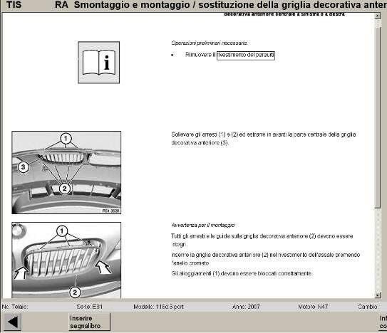 Il software Bmw TIS (Technical Information System) comprende i manuali di officina di tutte le auto Bmw e Mini fino all'agosto 2007 (questa è l'ultima versione disponibile stand-alone, successivamente la Bmw ha messo le informazioni solo on line e riservate alle concessionarie ufficiali). L'applicazione è completamente in ITALIANO, di facilissima installazione e consultazione. Contiene migliaia di disegni, diagrammi e foto che illustrano tutte le procedure di riparazione e manutenzione sulle vetture della casa. Comprende tutte le sezioni della vettura: motore, telaio, meccanica, carrozzeria, interni, impianto elettrico, cambio, sospensioni, ecc... E' possibile anche la ricerca della vostra specifica auto con l'inserimento del numero VIN! I manuali sono di facile consultazione, con la possibilità di stampare direttamente dal Pc le diverse sezioni. E' completo di chiare istruzioni in italiano per l’installazione, che comunque è molto semplice) Può lavorare assieme al software Bmw ETK (il catalogo con la raccolta delle parti di ricambio per Bmw e Mini) integrandosi perfettamente e divenendo un sistema completo per la cura e la manutenzione della propria auto (trovate il Bmw ETK fra le nostre inserzioni). (SOLO Windows 32bit, non funziona su sistemi 64bit!)
