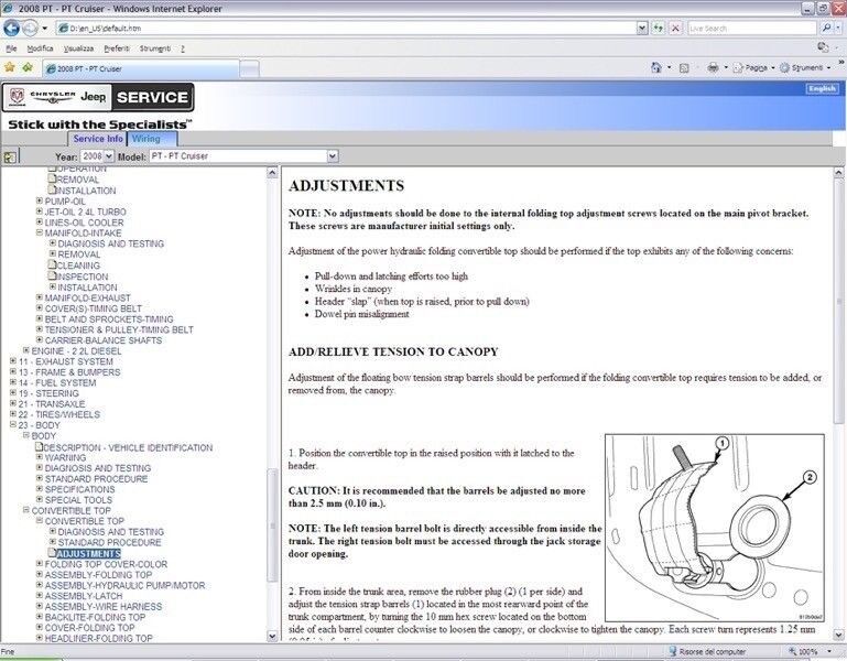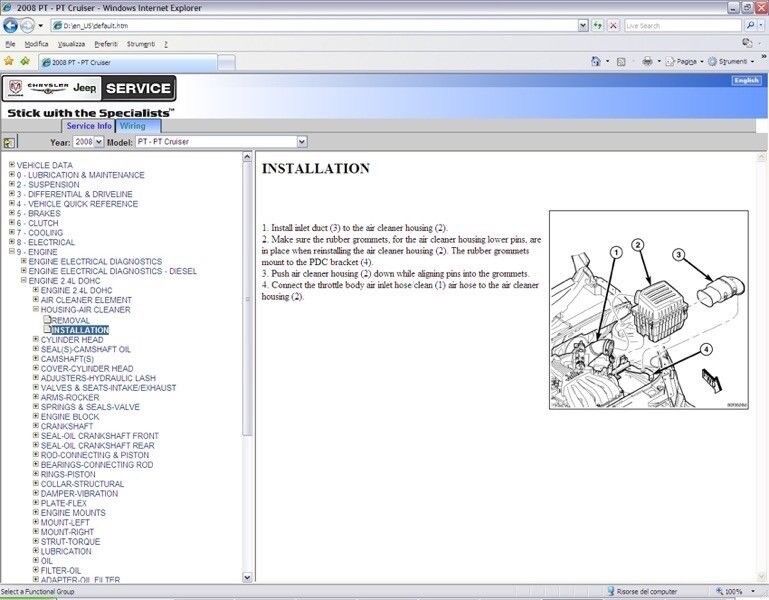(*) Dvd contains also manual for: Dodge Nitro (KA) - Chrysler 300 (LX) - Dodge Caliber(PM) - Chrysler Sebring (JS) - Chrysler Voyager (RT) - Chrysler Crossfire (ZH) - Dodge RAM (DR-DH-D1) - Dodge Charger (LX) - Dodge Magnum (LX) - Dodge Durango/Aspen (HB-HG) - Jeep Grand Cherokee (WH) - Jeep Wrangler (JK) - Jeep Liberty/Cherokee (KK) - Jeep commander (XH) - Jeep Compass/Patriot (MK) |