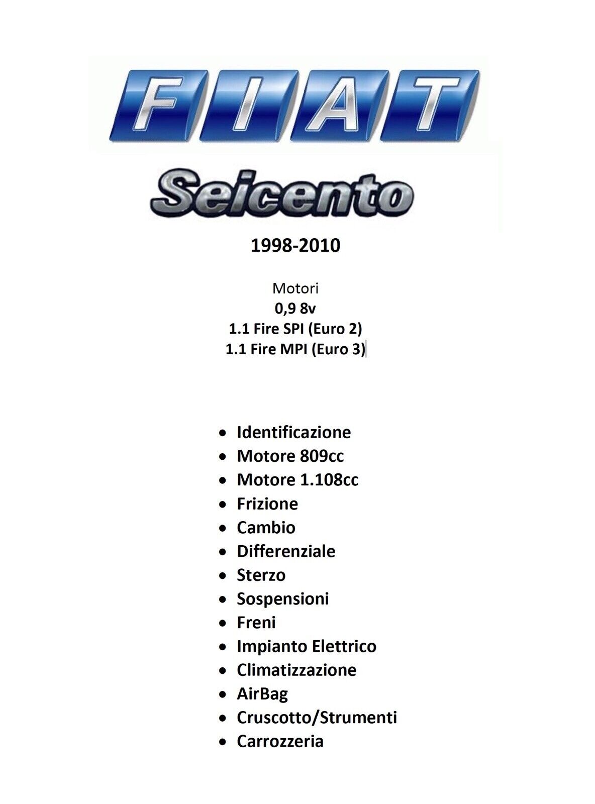 Modelli trattati/Models covered: Fiat Seicento (1998-2010)